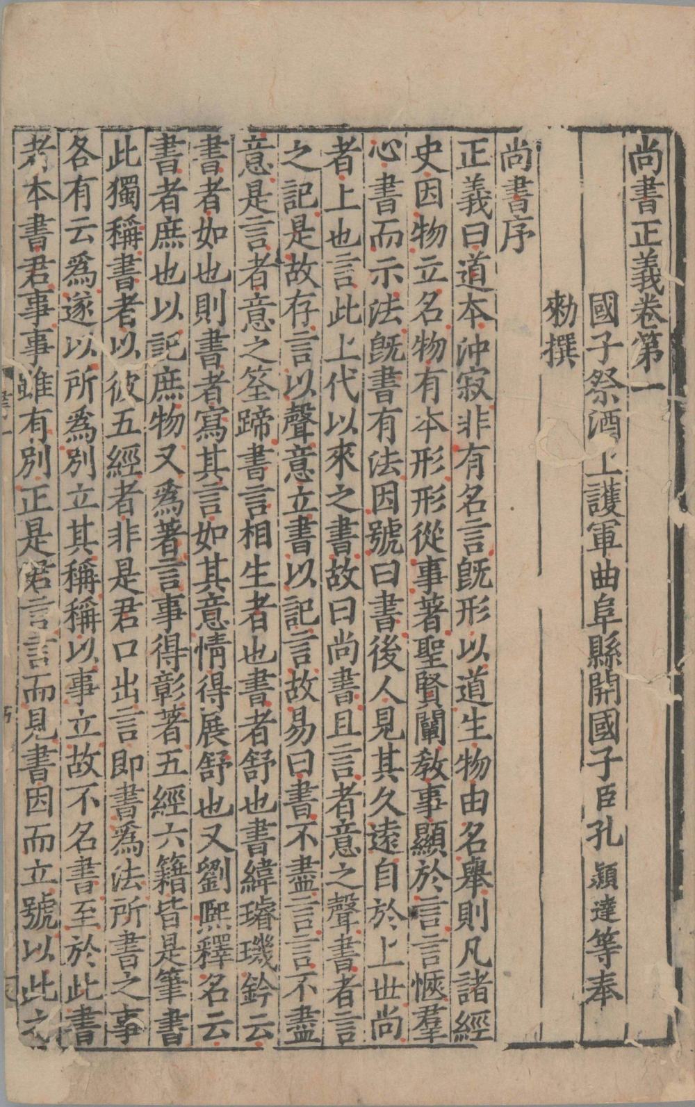 卷首题:尚書正義卷第一 國子祭酒上護軍曲阜縣開國子臣孔頴達等奉勑撰