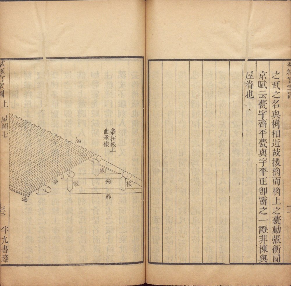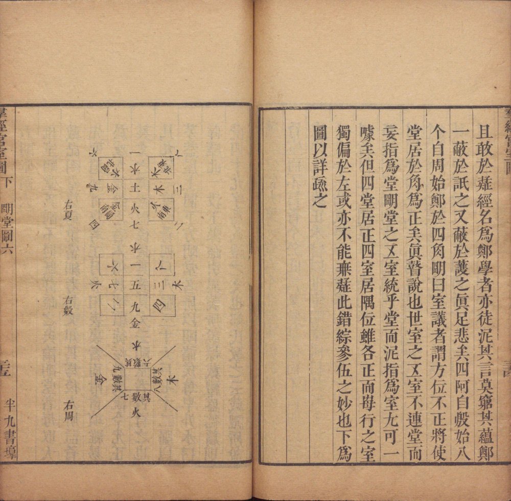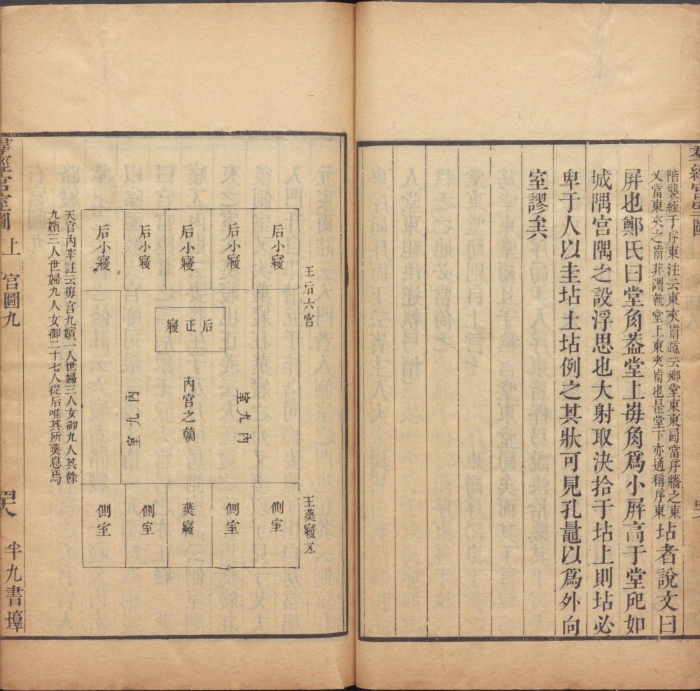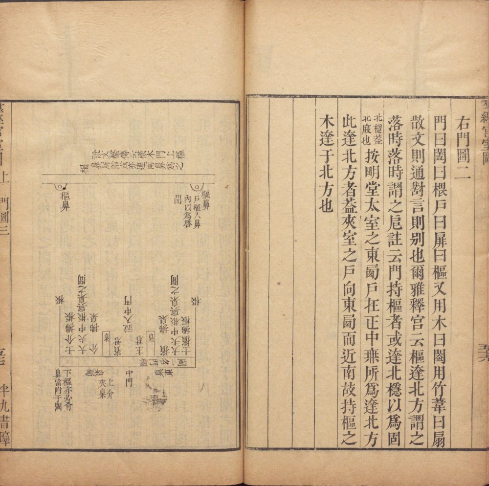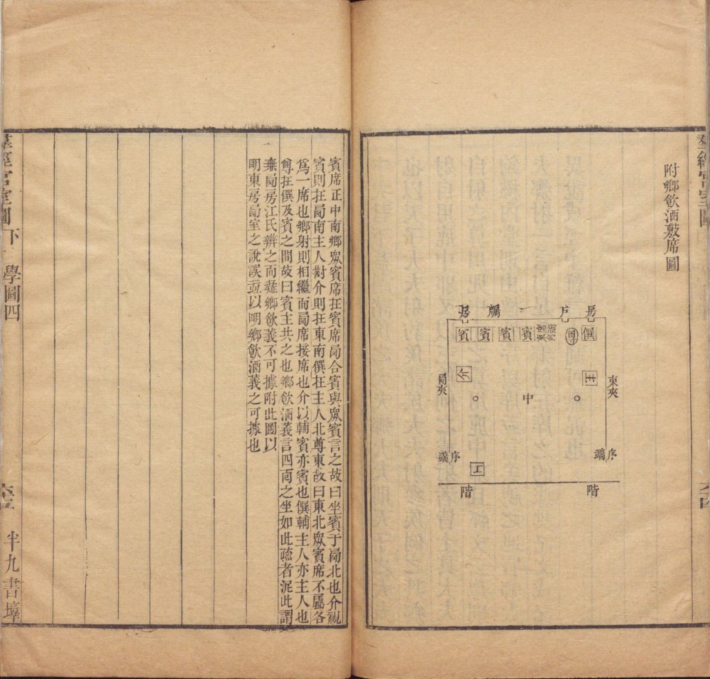 此《群经宫室图》由清代焦循撰。全书分上下两卷,上卷分城、宫、门、屋四类。图三十一篇,附图七种;下卷分社稷、宗庙、明堂、坛、学五类,图十九篇,附图五种。其内容为考订帝王宫室建筑制度,每图均有说一篇。此为清嘉庆五年江都焦氏半九书塾刊本。