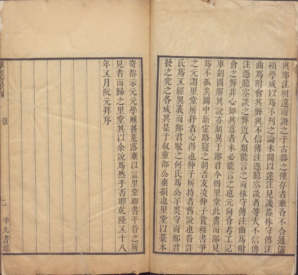 焦君里堂作群經宮室圖二卷,凡九類,曰城,曰宮,曰門,曰屋,曰社稷,曰宗廟,曰明堂,曰壇,曰學,爲圖五十篇,皆于衆說分賾群言,岨峿之際,尋繹經文而折衷之。圖所不能詳者,復因圖爲說,以附于後。其所見似刱,而適得夫經之意也,其所解似新,而適符乎古之制也。嗚呼,用力可謂勤矣。顧其書往往異于先儒之舊,學侶或致疑焉。余以爲儒者之于經,但求其是而已矣。是之所在,從注可,違注亦可,不必定如孔賈義疏之例也。歙程易田孝廉,近之善說經者也。其說考工戈戟鐘磬等篇,率皆與鄭注相違。而證之於古器之僅存者,無有不合。通儒碩學。咸以爲不刊之論。未聞以違注見譏。蓋株守傳注。曲爲附會。其弊與不從傳注憑臆空談者等。夫不從傳注憑臆空談之弊。近人類能言之。而株守傳注。曲爲附會之弊。非心知其意者。未必能言之也。元向有考工記車制圖解。其說亦頗異于鄭君。今得里堂此書,而鄙見爲不孤矣。圖中新定路寢之制,吾友淩次仲移書爭之。元謂里堂所抒者,心得也。次仲所持者舊說也。昔許氏爲五經異義。而鄭君駁之。何氏爲公羊墨守,而鄭君發之。究之各成其是,於叔重邵公無損也。里堂以藁本寄都示元,元學殖甚荒落,無以益里堂,聊書平昔之所見者而歸之。里堂其以余說爲然乎?否耶?