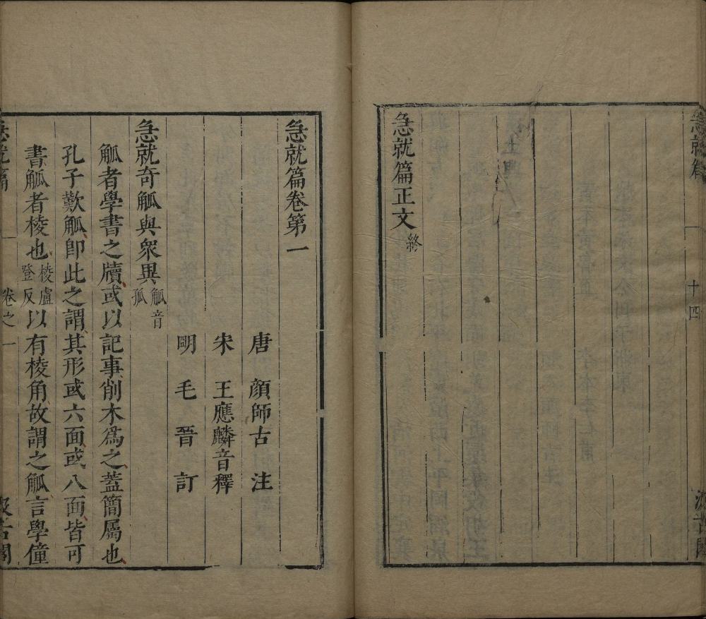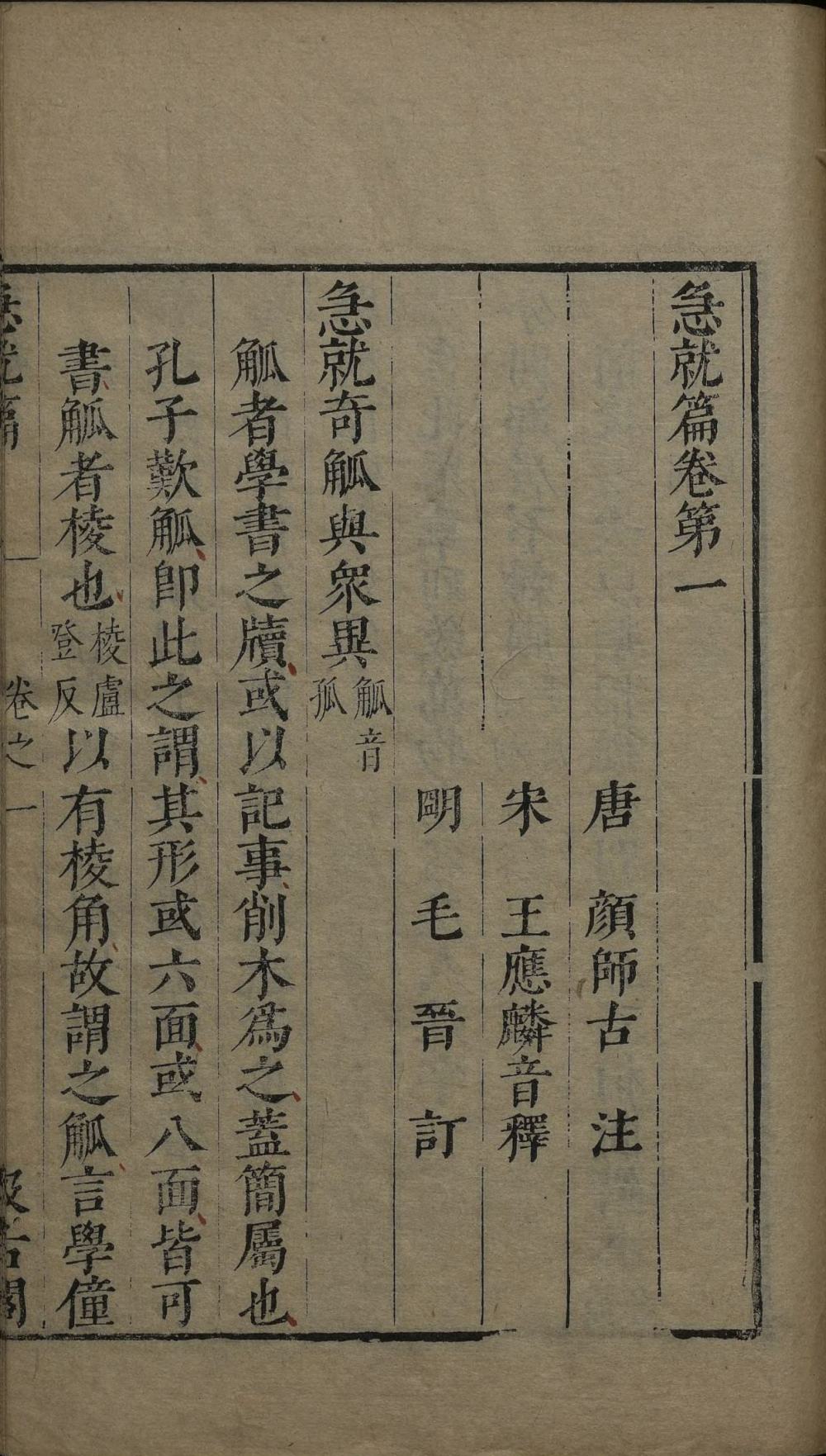 卷前题: 唐 顏師古 注、宋 王應麟音釋、明 毛晉 訂