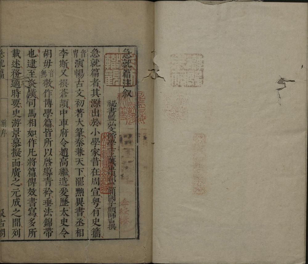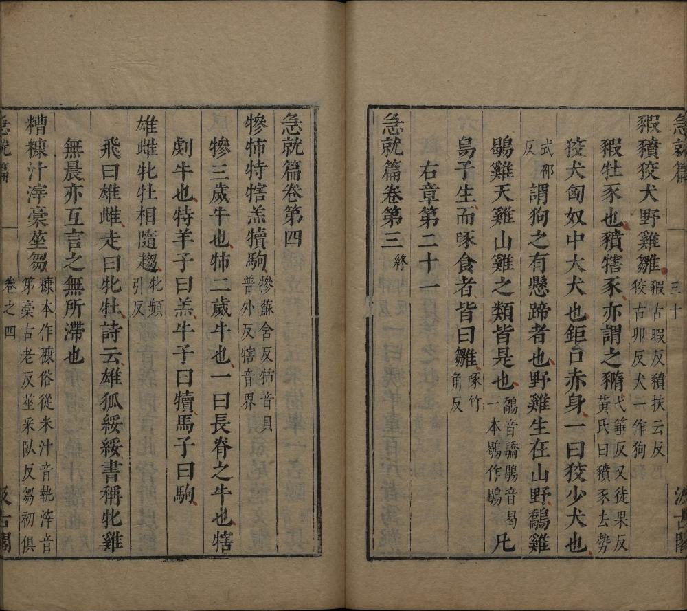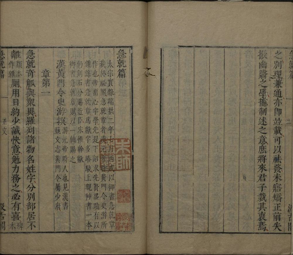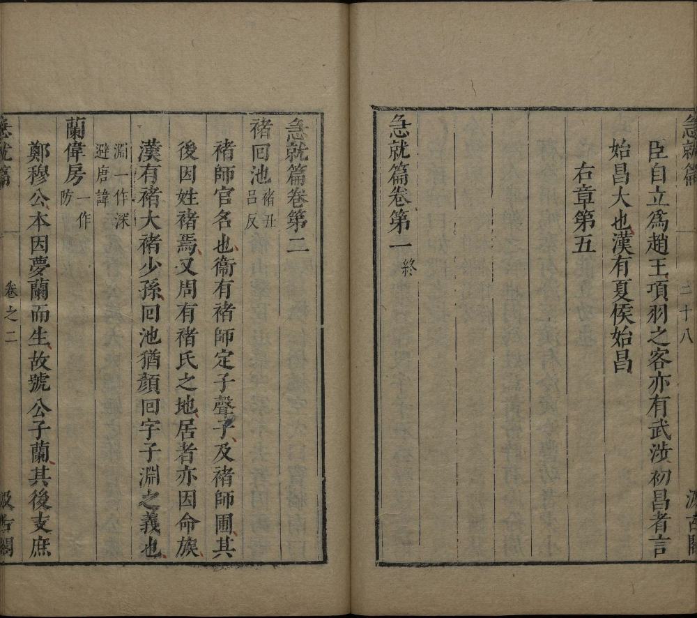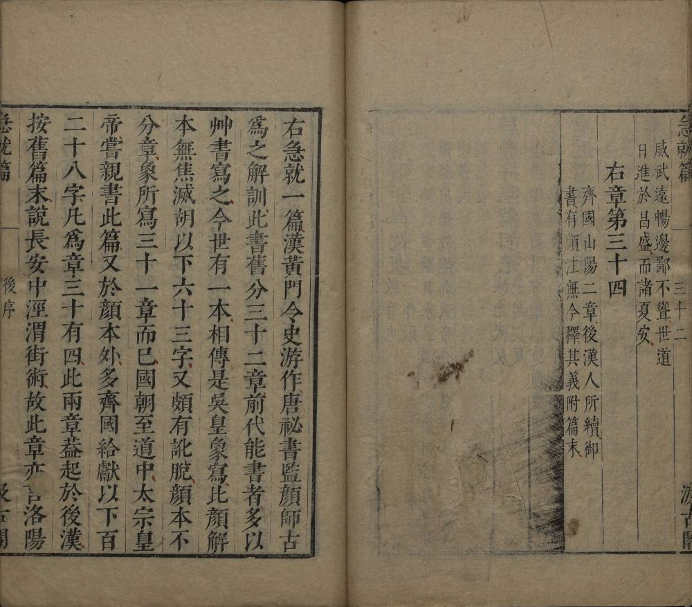 此明崇祯时期毛氏汲古阁刊本应为《津逮秘书》本,前附《急就篇》正文。