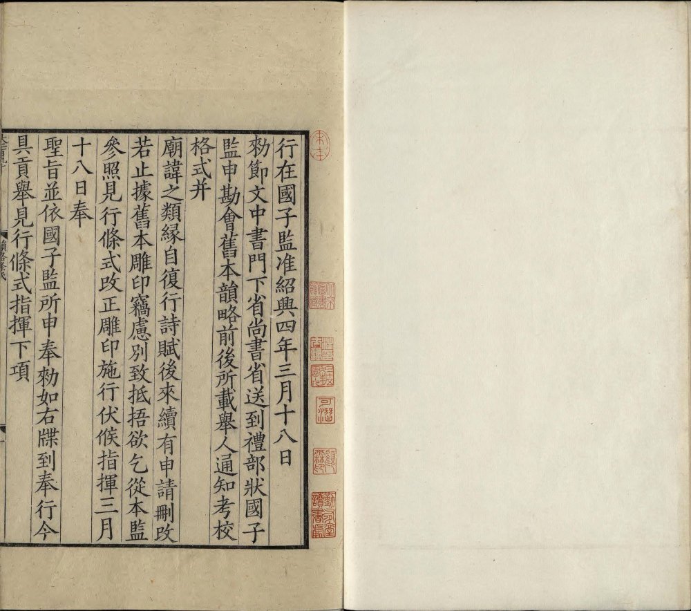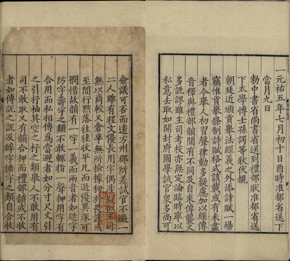 书前附《韵略条式》记载宋代元祐至绍熙年间科举程式、避讳、书写试卷格式以及考试章程。书内有后人抄配,应当是据其他宋本所影写。