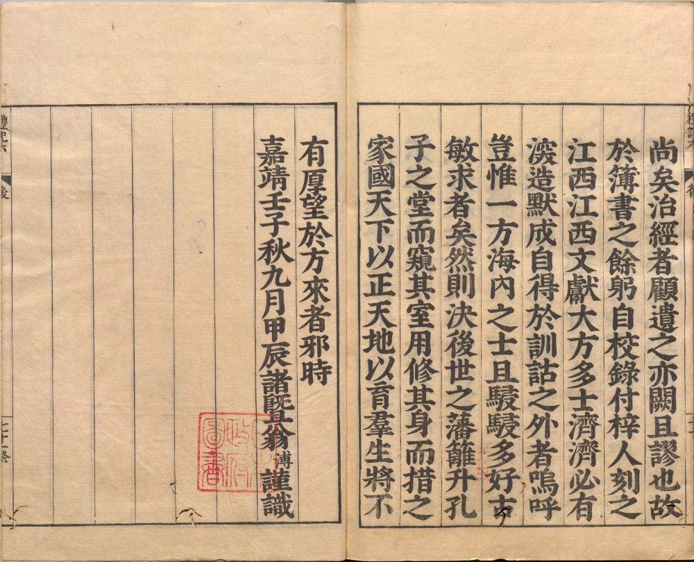 礼记卷末有:(書刻五經正文後)嘉靖壬子秋九月甲辰諸暨翁溥謹識