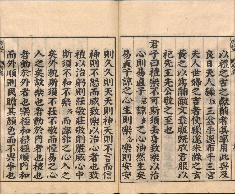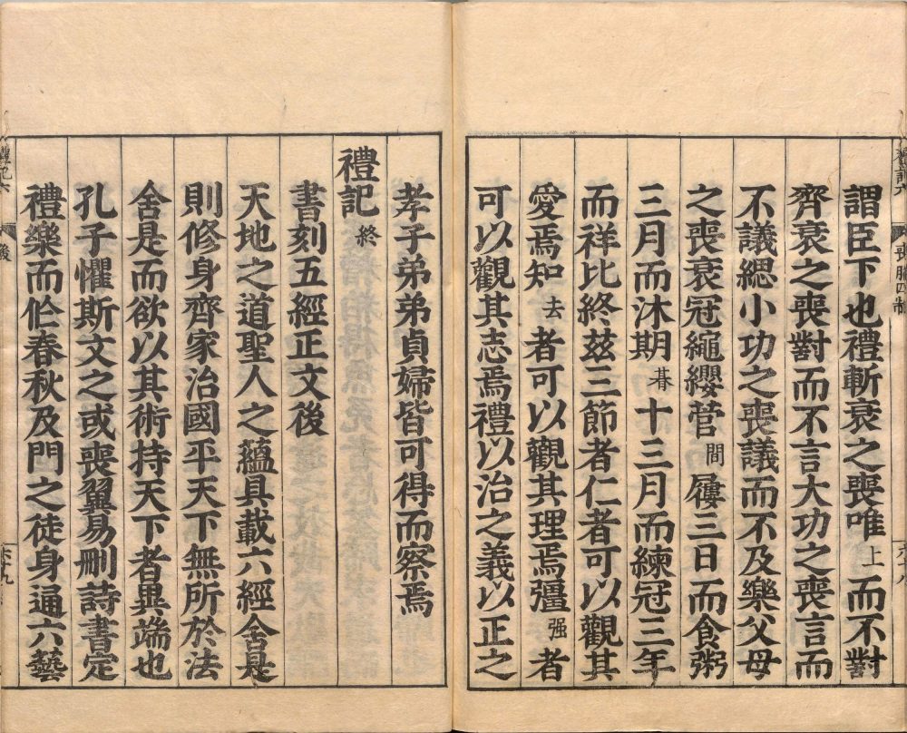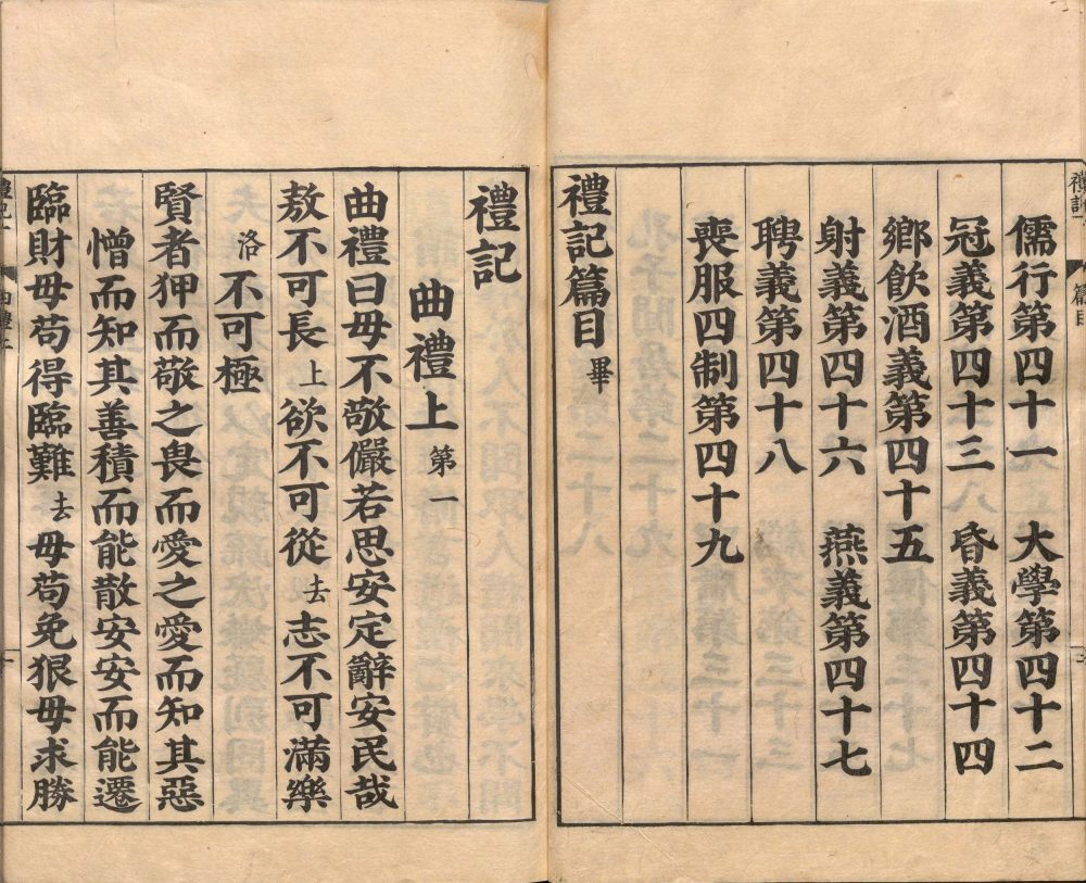《礼记》亦称《小戴礼记》,共 49 篇,是先秦到秦汉时期的礼学文献选编。最初为西汉的戴圣所纂,但非出于一时一人之手。戴圣本是今文《仪礼》博士,《仪礼》仅 17 篇,所记大多为士礼,故汉朝的儒家学者杂采当时能见到的各种文献以为己用。其内容较为驳杂,大致有记述礼节、记述政令、解释《仪礼》、记孔子言论、记述孔门及时人事、礼节考证、通论礼意或学术、记述制度、记述掌故、杂记等十种。东汉时郑玄为之作注,其文字较为通畅易读,流传较广。唐朝时取代《仪礼》的地位。